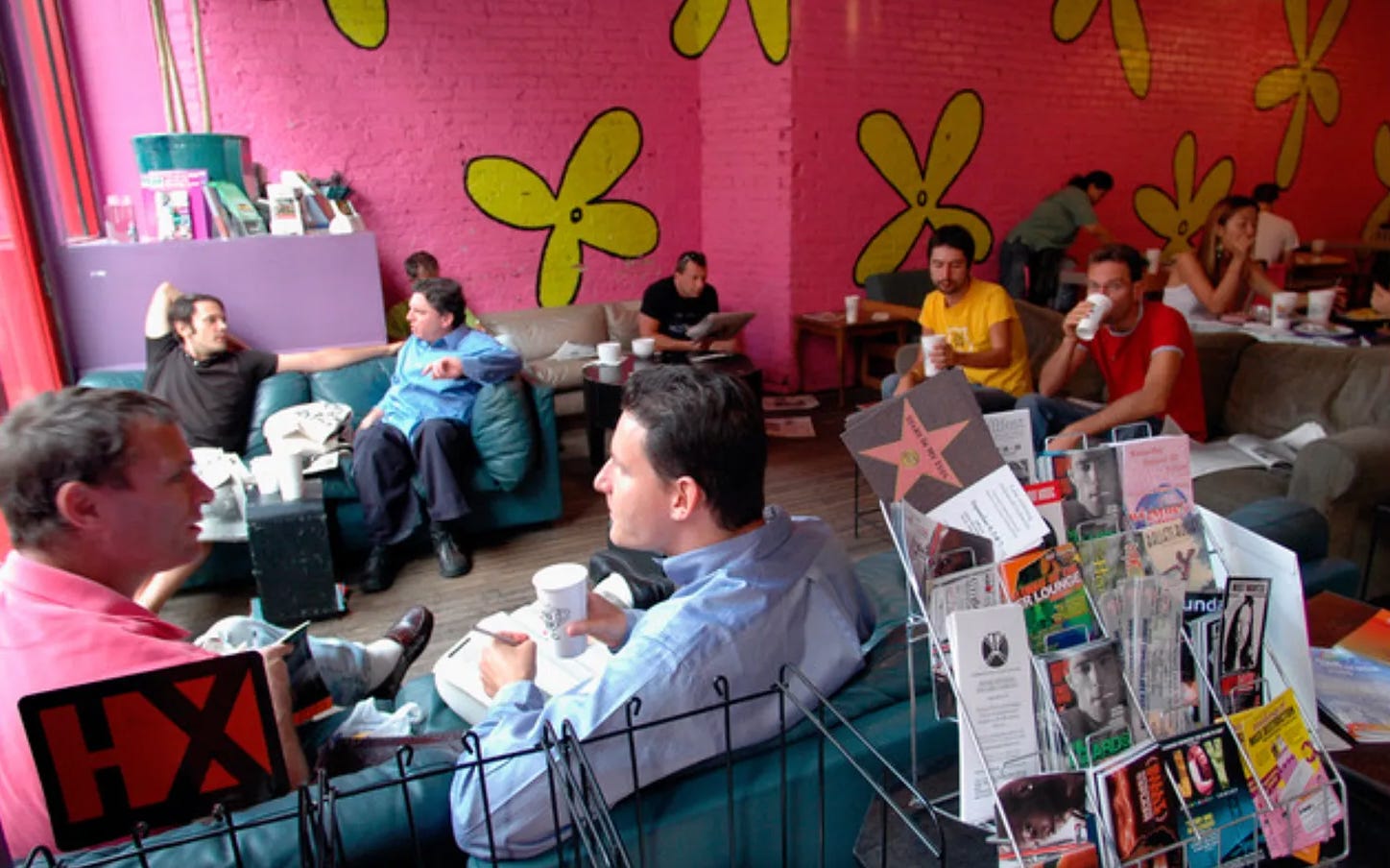 …and work together, along with our fellow writer friends James Hannaham and Cathay Che. (If we needed to be in touch with people, we’d tell them to call us on the Big Cup pay phone!) We called it our own little queer Chelsea Algonquin table à la H.L. Mencken, Dorothy Parker, etc. (Yes, we were pretentious little queens…at least I was!)