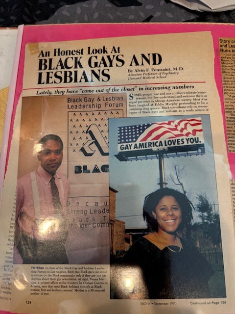 Roughly around then, he found out that he, too, was HIV+. He ended up working at the center of L.A.’s governmental AIDS response through the nineties—until, at the end of the decade, he founded the Black AIDS Institute to, more or less in his words, work with Black national institutions and churches to address the AIDS epidemic (and the underlying homophobia and stigma) in Black communities. When he started BAI in 1999, the epidemic was beginning to wane among gay white men because of the introduction of the highly effective meds “cocktail” a few years prior—but Black folks were far behind in even knowing some of the basics about AIDS, as Phill explains in the interview, never mind about access to and readiness for treatment. BAI did a lot to change that over the next two decades, until Phill stepped down in 2019. (BAI still exists.)
