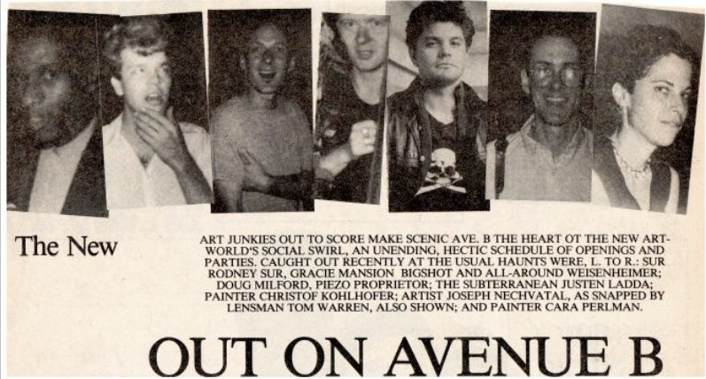 Sur: Because of the damage—and the history that's associated behind it. Thumbing your nose at the system the way we did then has changed. For example, when we were doing all our stuff in the East Village galleries, we didn't care about [recognition from] The New York Times. We figured they were too stupid to figure out what was going on. So we created our own press—The SoHo Weekly News, The East Village Eye, Today, people are going to target the Times the most.