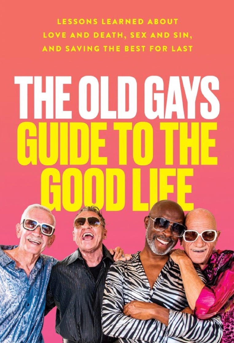 So anyway. Now I will set up the interview that I did do this week. It's with Jessay Martin. Have you heard of The Old Gays? They are these four (sometimes five) senior gay men in Palm Springs who have kind of become social (and even traditional) media darlings since around Covid for their Instagram and TikTok (which I'm not on) posts where they dance and talk and dish and do things. Here they are a year ago talking about their “in and out” list for 2024, this time including Old Gay #5, Joc (Filipino guy in the upper left), who is Jessay’s longtime best friend: