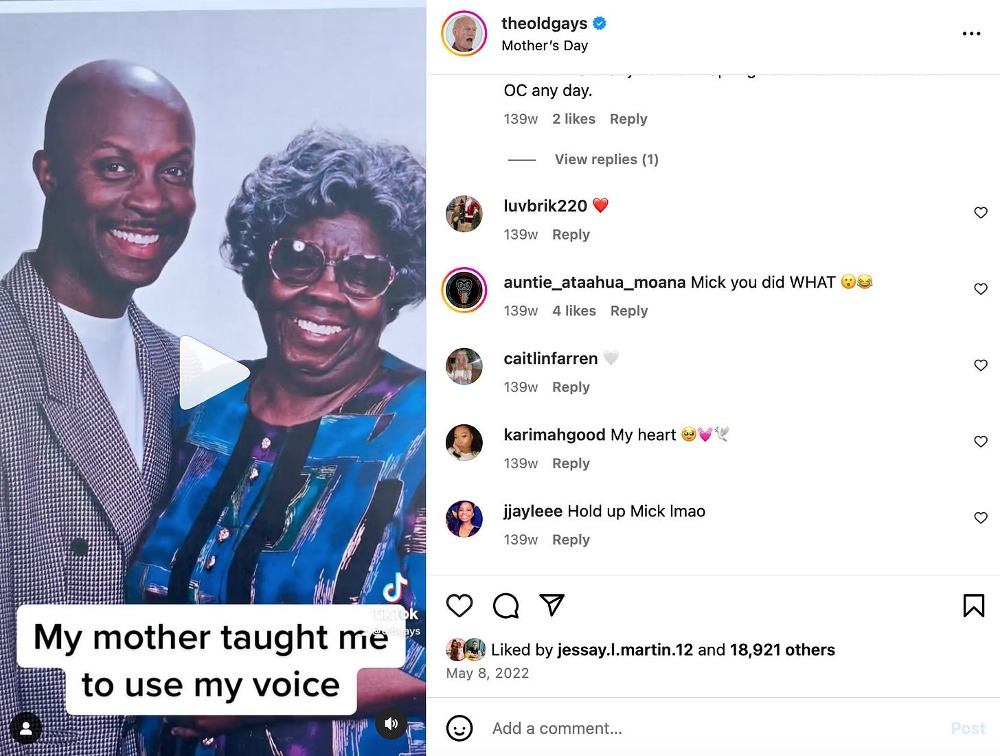 She went, "Okay, baby." She passed away 11 years ago.