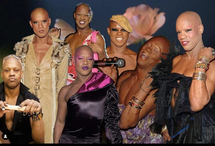 Anyway, I love this month’s interview. The past few interviews, though nice, have felt a little dry and withholding to me and I love how crazy and fun and silly and also moving this interview is. It’s with Kevin Aviance, who has been a part of my NYC life since—I remember this very vividly—I went to this sexy trip-hop cruising night called “The Locker Room” in 1995 at the then-Chelsea gay bar Champs and it was hosted by relative NYC newcomer Kevin, who walked around all night with a mic intoning, in a very gay James Earl Jones stentorian voice, “The LOCKER Room…THE Locker Room…The Locker ROOM?” with slightly different inflections each time. It was weird and it cracked me up; it felt like he was slightly trolling the very idea of the night itself (gays trying to be masc and jockish with a night called “The Locker Room” lol). Then a year later, Kevin’s dance tracks “Cunty” and “Din Da Da” were all over the clubs—just hearing those tracks reminds me of being out every night in the late nineties.